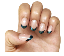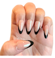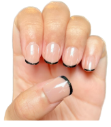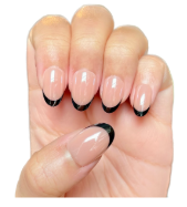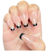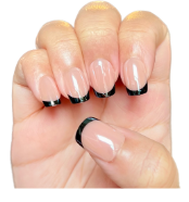 - Unique Selling Point: Classic black French tip with glaze overlay