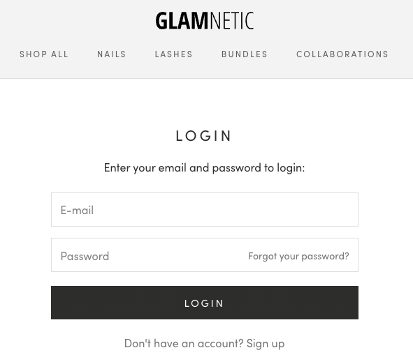 1. Go to the Glamnetic homepage and click the Account Login icon at the top right corner of the page, or simply click here.