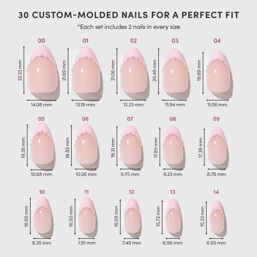 - Nail Description: Inspired by Kylie Jenner. Pastel pink French tip with 3D pearls in an array of sizes around the tip.