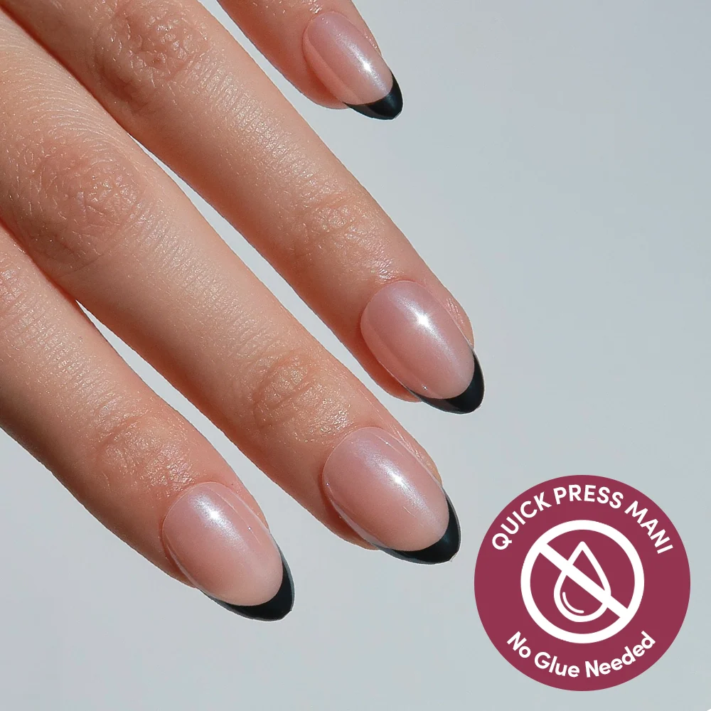 French Noir | Glazed | Semi-Transparent | A nude base with crisp black French tips and a glazed finish for a bold, modern contrast. | ![]() |