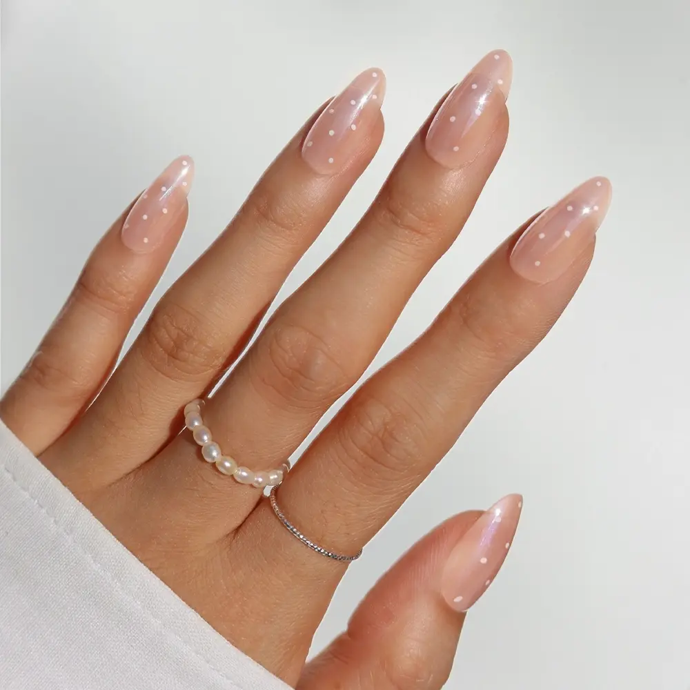 Sugar Glazed | Glossy | Glazed | Semi-transparent | Nude glazed base with white polka dots | ![]() |